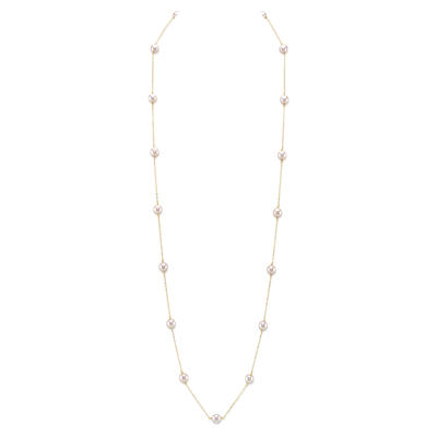 This beautiful 36" Akoya pearl necklace consists of beautiful and lustrous pearls in AAA quality, and is mounted on 14K gold. Akoya pearls have graced the necks, ears, fingers, and wrists of women for decades. The Pearl Source imports their Akoya pearls from the saltwaters of Japan, grown in the Pinctada fucata oyster. All of our Akoya pearl necklaces are made on site, and our extensive experience and careful attention to detail allows us to create truly beautiful Akoya pearl jewelry.