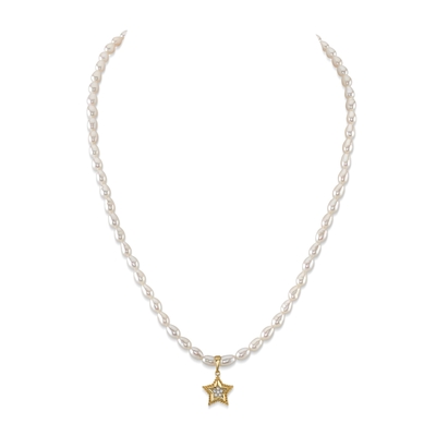 4.0-4.5mm White Freshwater Oval Pearl Star Necklace - Secondary Image 4.0-4.5mm White Freshwater Oval Pearl Star Necklace - Secondary Image