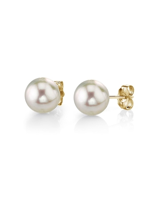 White Akoya pearl stud earrings are known for their classic round shape, brilliant luster, and refined elegance. Cultivated in the cool saltwater of Japan, Akoya pearls are admired for their mirror-like surface and bright white tone with subtle overtones of rose or silver. Compared to freshwater pearls, Akoya pearls are typically more uniform in shape and have a sharper, more reflective glow---making them the traditional choice for timeless, sophisticated jewelry.