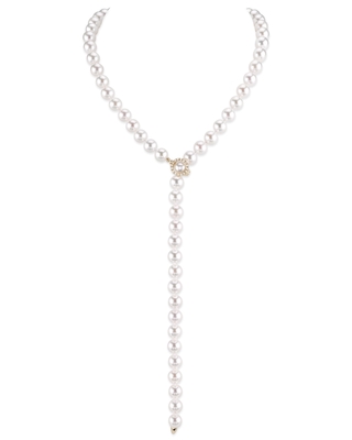 8.0-8.5mm Japanese Akoya White Pearl & Diamond Lariat Y-Shape Adjustable Necklace in Opera Length 8.0-8.5mm Japanese Akoya White Pearl & Diamond Lariat Y-Shape Adjustable Necklace in Opera Length - Model Image 8.0-8.5mm Japanese Akoya White Pearl & Diamond Lariat Y-Shape Adjustable Necklace in Opera Length - Secondary Image 8.0-8.5mm Japanese Akoya White Pearl & Diamond Lariat Y-Shape Adjustable Necklace in Opera Length - Third Image