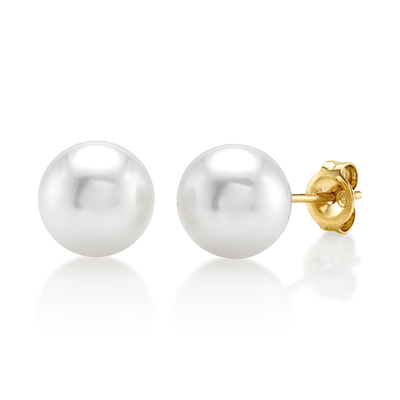 Simplicity and elegance have never made such a perfect combination. A beautiful pair of 8mm White Australian South Sea pearls on elegant 14K white gold stud backings. Finding pearls in this unique South Sea color is very rare and will make a perfect match with one of our elegant white pearl necklaces. The pearl earrings have a 'Very High' grade luster, our highest grade available.
