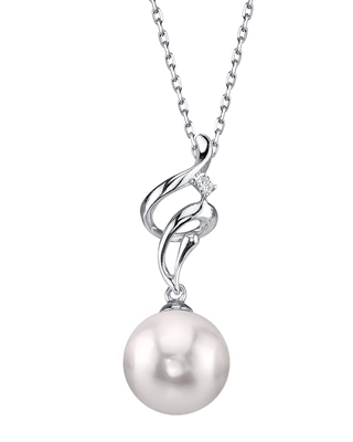 This exquisite pearl pendant features a AA+ quality 8.5-9.0mm Japanese Akoya cultured pearl with 'Very High' luster (please see our Akoya pearl grading section for more information). All Akoya pearls are imported directly from the pearl farms of Japan. The pendant is comprised of .75 grams of the finest quality 14K gold and also includes a single .01 Carat SI-Quality diamond. All of our pearl pendants are made on site, and our experienced staff of GIA certified specialists pay careful attention to all details in order to create a truly beautiful piece of jewelry. This pendant comes packaged in a jewelry gift box. Please view the options below to customize your pendant.