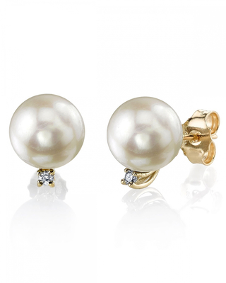 These earrings include two beautiful Japanese Akoya pearls with a very high luster in 14K yellow or white gold. The mountings include two sparkling SI quality diamonds totaling .03 Carats. If you want to complete your pearl jewelry set, make sure you take a look at the pendant featured at the bottom of the page.