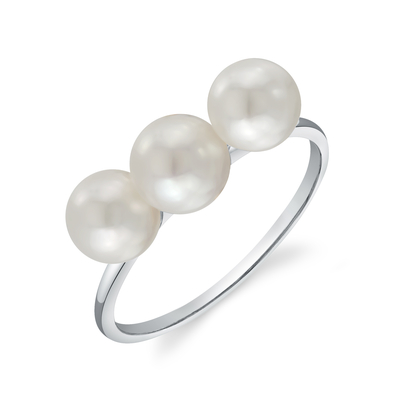 This chic ring features three lustrous white 6.0-6.5mm Freshwater cultured pearls . The pearls are mounted on 14K Gold, available in a number of sizes for the perfect fit. Our rings are packaged in a beautiful jewelry box, perfect for gifting.