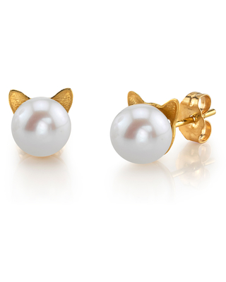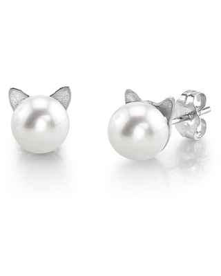 These exquisite cat pearl earrings add a touch of elegance to any occasion. These earrings feature two lustrous 7mm AAAA quality Freshwater pearls, hand picked for their gorgeous luster and unblemished surface.The pearls are mountings on 14K white gold.