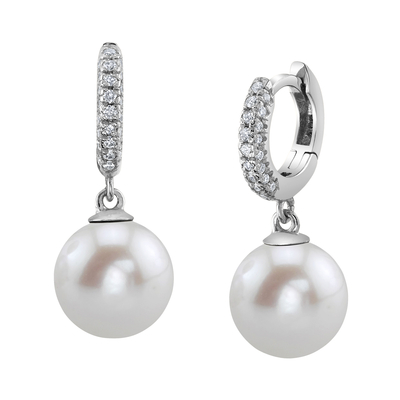 These exquisite pearl huggie earrings add a touch of elegance to any occasion. These earrings feature two lustrous 9mm AAAA quality Freshwater pearls, hand picked for their gorgeous luster and unblemished surface. The pearls are mountings on 14K white gold.