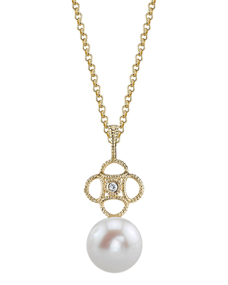 This exquisite pendant features a 7mm AAAA quality Freshwater pearl mounted on the finest 14K gold with a dazzling SI clarity diamond. The pendant is packaged in a beautiful jewelry gift box, perfect for gifting.