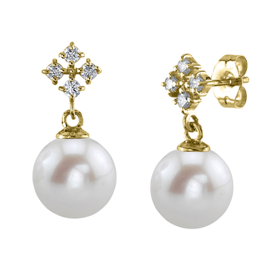 These exquisite pearl earrings add a touch of elegance to any occasion. These earrings feature two lustrous 9mm AAAA quality Freshwater pearls, hand picked for their gorgeous luster and unblemished surface. The pearls are mountings on 14K white gold.