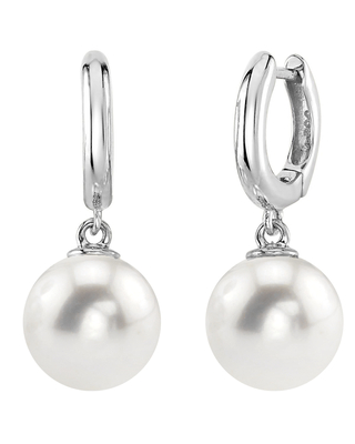 These exquisite pearl huggie earrings add a touch of elegance to any occasion. These earrings feature two lustrous 9mm AAAA quality Freshwater pearls, hand picked for their gorgeous luster and unblemished surface. The pearls are mountings on 14K white gold.