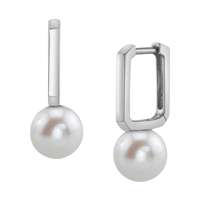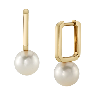 These exquisite huggie pearl earrings add a touch of elegance to any occasion. These earrings feature two lustrous 8 - 9mm AAAA quality Freshwater pearls, hand picked for their gorgeous luster and unblemished surface. The pearls are mountings on 14K White and Yellow gold.