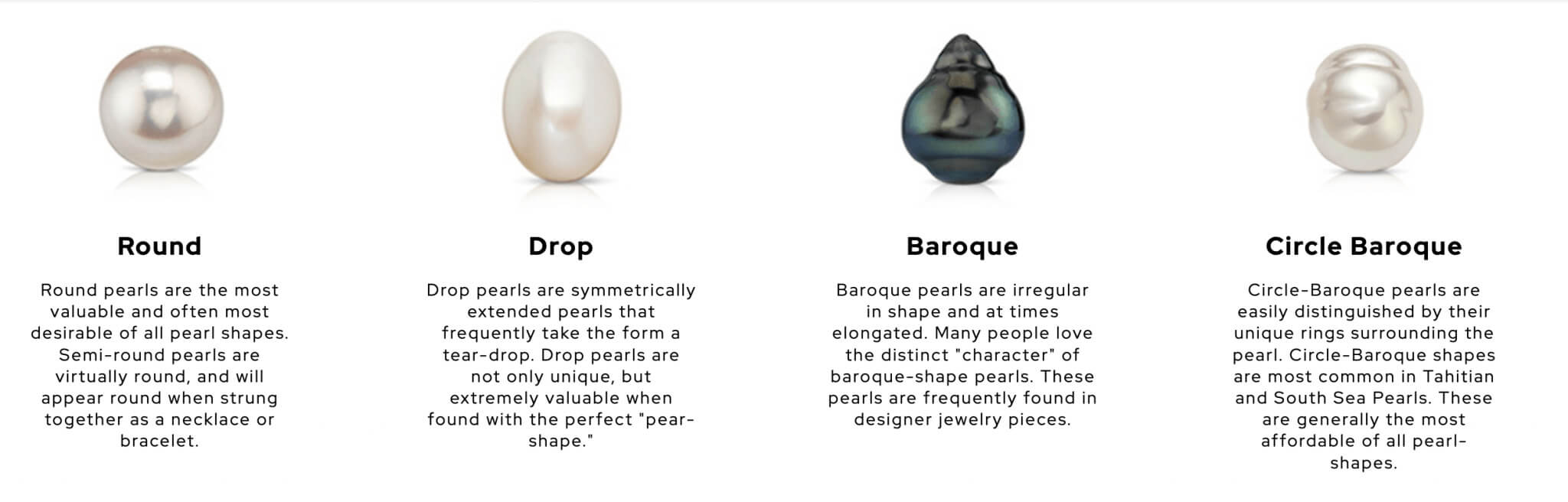 Here are the four main types of cultured pearls you’ll find on the market: