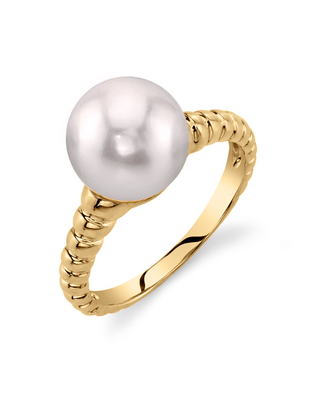 This exquisite pearl ring features an 9.0-9.5mm AA+ quality Akoya pearl, hand-picked for it's incredible luster and overtones. The pearl is mounted on the finest 14K gold.