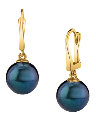 These earrings include two beautiful Japanese Black Akoya pearls with 'Very High' luster, our highest available. These stunning pearls hang from 14K white or yellow gold earrings to create a product that displays pure, classic elegance.