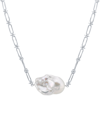 Substantial, quality statement necklace. The Pearl is large and luminous, with an almost opalescent quality. This is not your grandma's pearl necklace; it's edgy, modern, and refined at the same time.