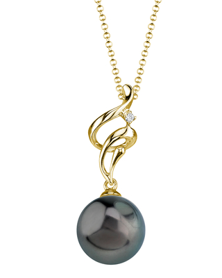This exquisite pearl pendant features an AAA quality 8mm Tahitian South Sea pearl with 'Very High' luster (please see our pearl grading section for more information). All Tahitian pearls are imported directly from the shores of Tahiti. The pendant is comprised of .75 grams of the finest quality 14K gold and also includes a single .01 Carat SI-Quality diamond. All of our pearl pendants are made on site, and our experienced staff of GIA certified specialists pay careful attention to all details in order to create a truly beautiful piece of jewelry. This pendant comes packaged in a jewelry gift box. Please view the options below to customize your pendant.