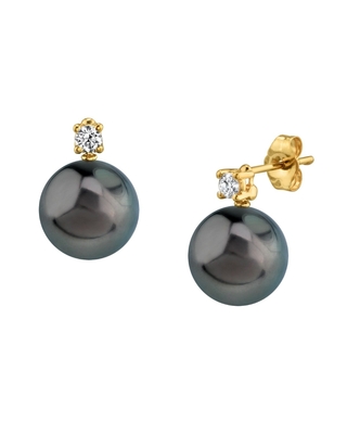 These exquisite pearl earrings feature two 10mm AAA Quality Tahitian South Sea pearls, hand-picked for their incredible luster and overtones. The pearls are mounted on the finest 14K gold with dazzling SI clarity diamonds.