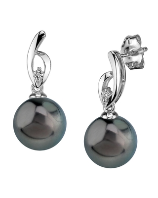 These exquisite pearl earrings feature two 8mm AAA Quality Tahitian South Sea pearls, hand-picked for their incredible luster and overtones. The pearls are mounted on the finest 14K gold with dazzling SI clarity diamonds.