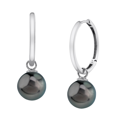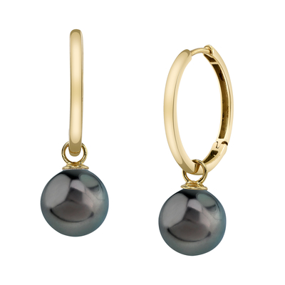 A beautiful pair of 10mm Tahitian South Sea cultured hoop pearl earrings with gorgeous 14K gold mountings. Our Tahitian pearls come directly from the pearl farms of French Polynesia. Please view the options below to customize your pearl earrings to your specifications. These earrings are approximately 1 inch in height including the pearl.