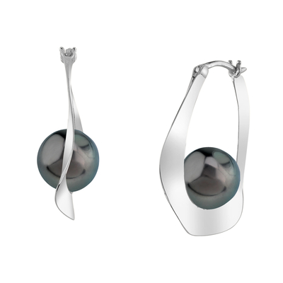 A beautiful pair of 9mm Tahitian South Sea cultured hoop pearl earrings with gorgeous 14K gold mountings. Our Tahitian pearls come directly from the pearl farms of French Polynesia. Please view the options below to customize your pearl earrings to your specifications. These earrings are approximately 1 inch in height including the pearl.
