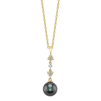 This beautiful Tahitian South Sea pearl pendant features a lustrous 10mm AAA quality pearl. The pearl is mounted on the finest quality 14K gold with dazzling Lab Grown diamonds.