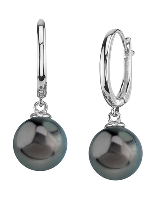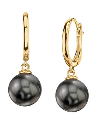A beautiful pair of 10mm Tahitian South Sea cultured pearl huggie earrings with gorgeous 14K gold mountings. Our Tahitian pearls come directly from the pearl farms of French Polynesia. These pearl earrings comprise of approximately 1.9 grams of the highest quality 14K gold. All pearl earrings are approved by our staff of GIA pearl experts and come packaged in a beautiful pearl jewelry box. Please view the options below to customize your pearl earrings to your specifications. These earrings are approximately 1 inch in height including the pearl.