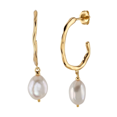 These exquisite hoop pearl earrings add a touch of elegance to any occasion. These earrings feature two lustrous 9-10mm AAA quality Baroque White Freshwater pearls, hand picked for their gorgeous luster. The pearls are mountings on a sterling silver, Rose Gold plated or Yellow Gold Plated hoop base.