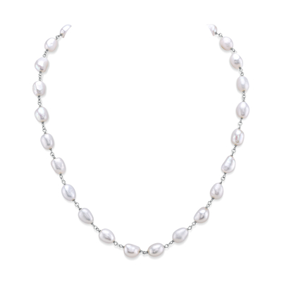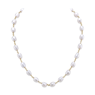 This beautiful pearl necklace would be the perfect gift for any occasion. The necklace features 7-8mm various baroque shaped Freshwater pearls in AAA quality, hand picked for its gorgeous luster and overtones. The pearls are standing on an 16"-18" inch 925 sterling silver or yellow gold plated chain. All products come packaged in a beautiful jewelry box with a genuine cultured pearl guarantee.