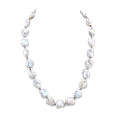 This beautiful pearl necklace would be the perfect gift for any occasion. The necklace features AAA quality, 10-13mm various Keshi baroque shaped Freshwater pearls, hand picked for its gorgeous luster and overtones. The pearls are standing on an 18" inch 925 sterling silver or yellow gold fill base and clasp. All products come packaged in a beautiful jewelry box with a genuine cultured pearl guarantee.