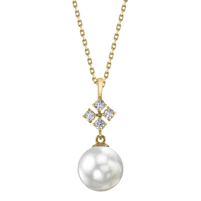 These exquisite pendant feature 10mm high-quality White South Sea pearls, handpicked for their incredible luster and overtones. The pearls are mounted on the finest 14K gold with .200 carats of dazzling SI clarity diamonds. These pendant come packaged in a beautiful jewelry gift box, perfect for gifting.