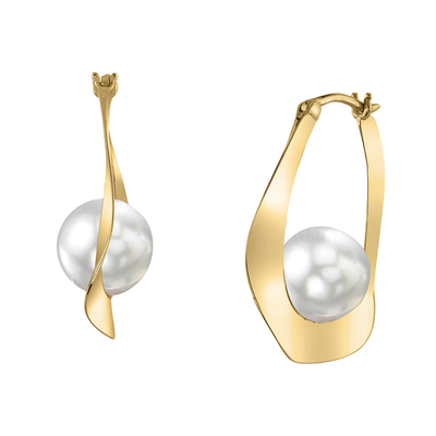 A beautiful pair of 9mm White South Sea cultured hoop pearl earrings with gorgeous 14K gold mountings. Our White South Sea pearls come directly from the pearl farms of Australia. These pearl earrings are AA+ quality with mirror luster (please see our pearl grading section for more information). All pearl earrings are approved by our staff of GIA pearl experts and come packaged in a beautiful pearl jewelry box. Please view the options below to customize your pearl earrings to your specifications. These earrings are approximately 1 inch in height including the pearl.