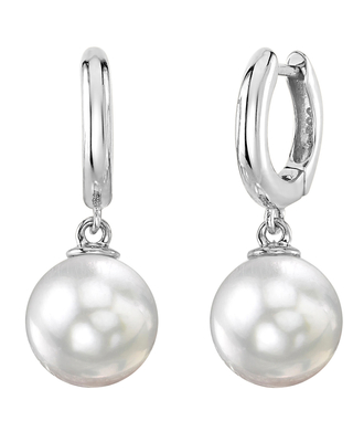 These exquisite pearl huggie earrings add a touch of elegance to any occasion. These earrings feature two lustrous 9mm AAA quality White South Sea pearls, hand picked for their gorgeous luster and unblemished surface. The pearls are mountings on 14K white gold.
